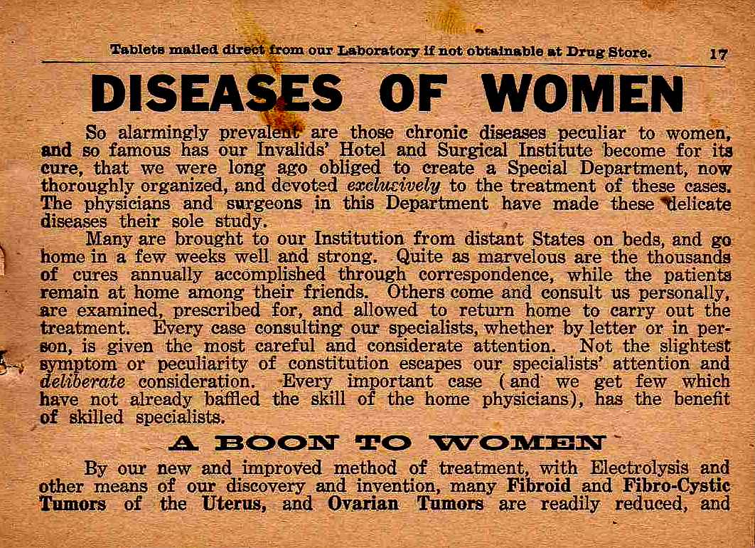 The Pure Food & Drug Act of 1906 mandated the ingredients of nostrums be printed on their labels. For more of Dr. Pierce on the excellence of Dr. Pierce and his medications, read the paragraphs below. They are infused with the sexism common to the times. (From the New York Heritage Digital Collections.)